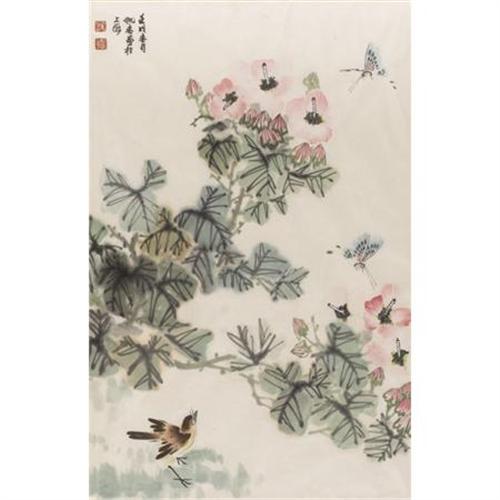 <B>Artist Unknown</B></I><BR><I>Flowers and Dragonflies</B></I><BR>Watercolor on paper<BR>26 x 17 inches (66.0 x 43.2 cm)<BR>Signed upper left<BR> <BR><BR><b>Shipping:</b> Requires 3rd Party Shipping (<a target="_blank" href="http://www.heritageauctions.com/common/shipping.php">view shipping information</a>)