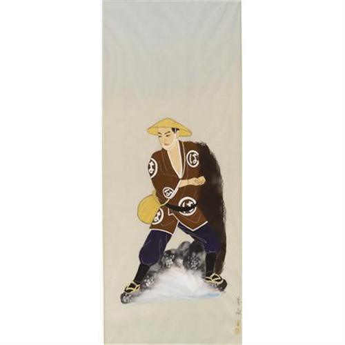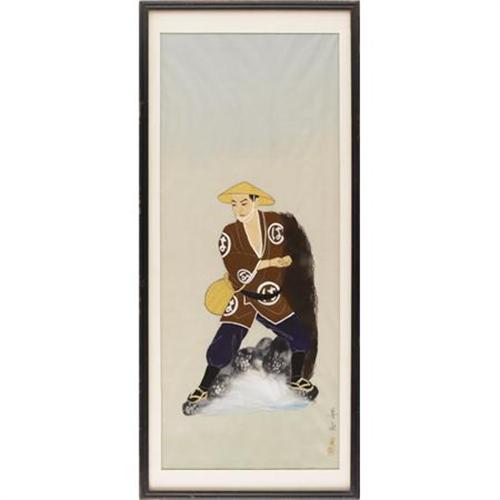 <B>Artist Unknown</B></I><BR><I>Figure of a Man</B></I><BR>Watercolor on silk<BR>23-1/4 x 9-1/2 inches (59.1 x 24.1 cm)<BR>Signed lower right<BR> <BR><BR><b>Shipping:</b> Requires 3rd Party Shipping (<a target="_blank" href="http://www.heritageauctions.com/common/shipping.php">view shipping information</a>)