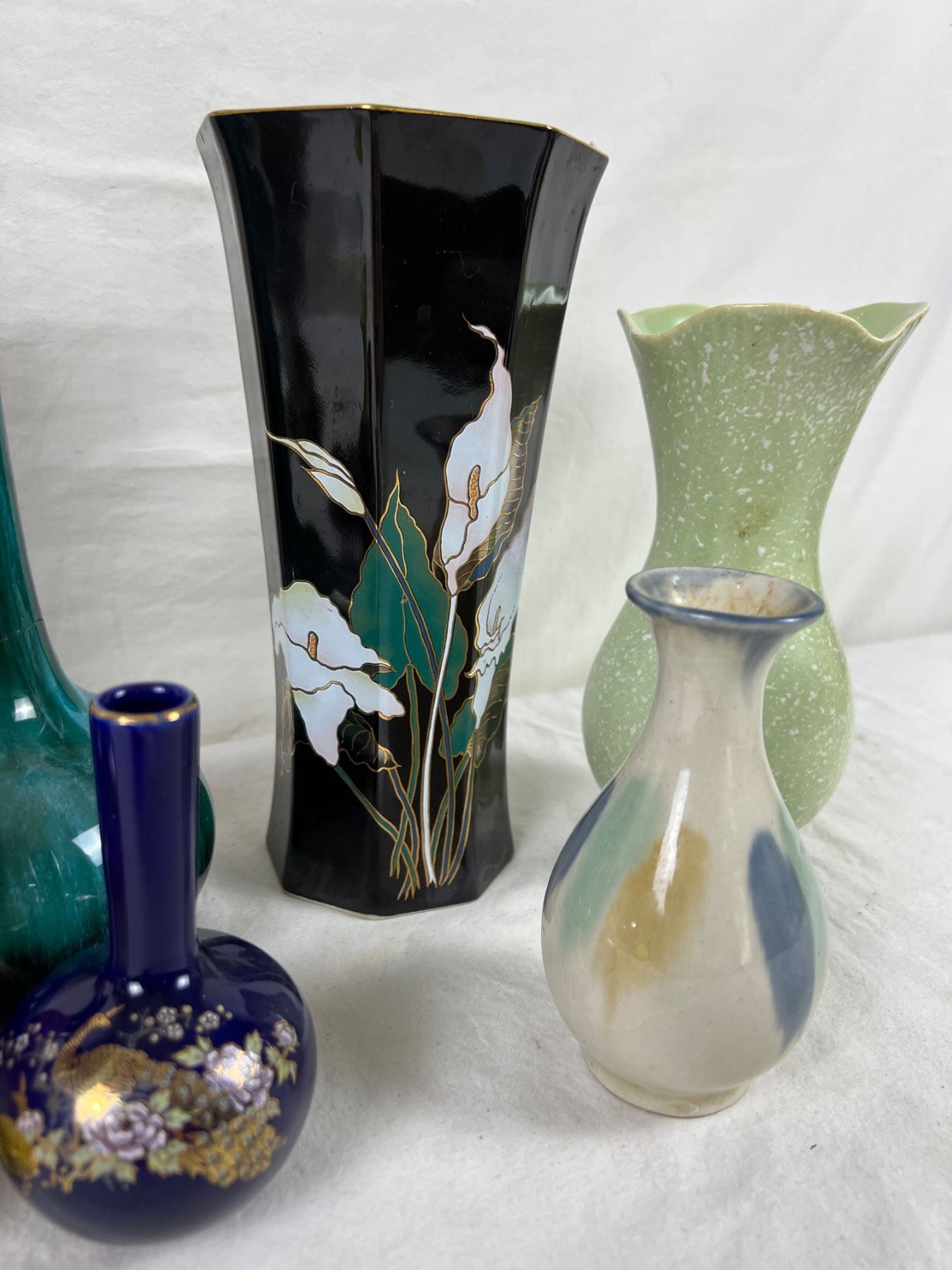Includes a Blue Mountain Pottery piece. Stem is damaged of same piece. Measures 11" tall