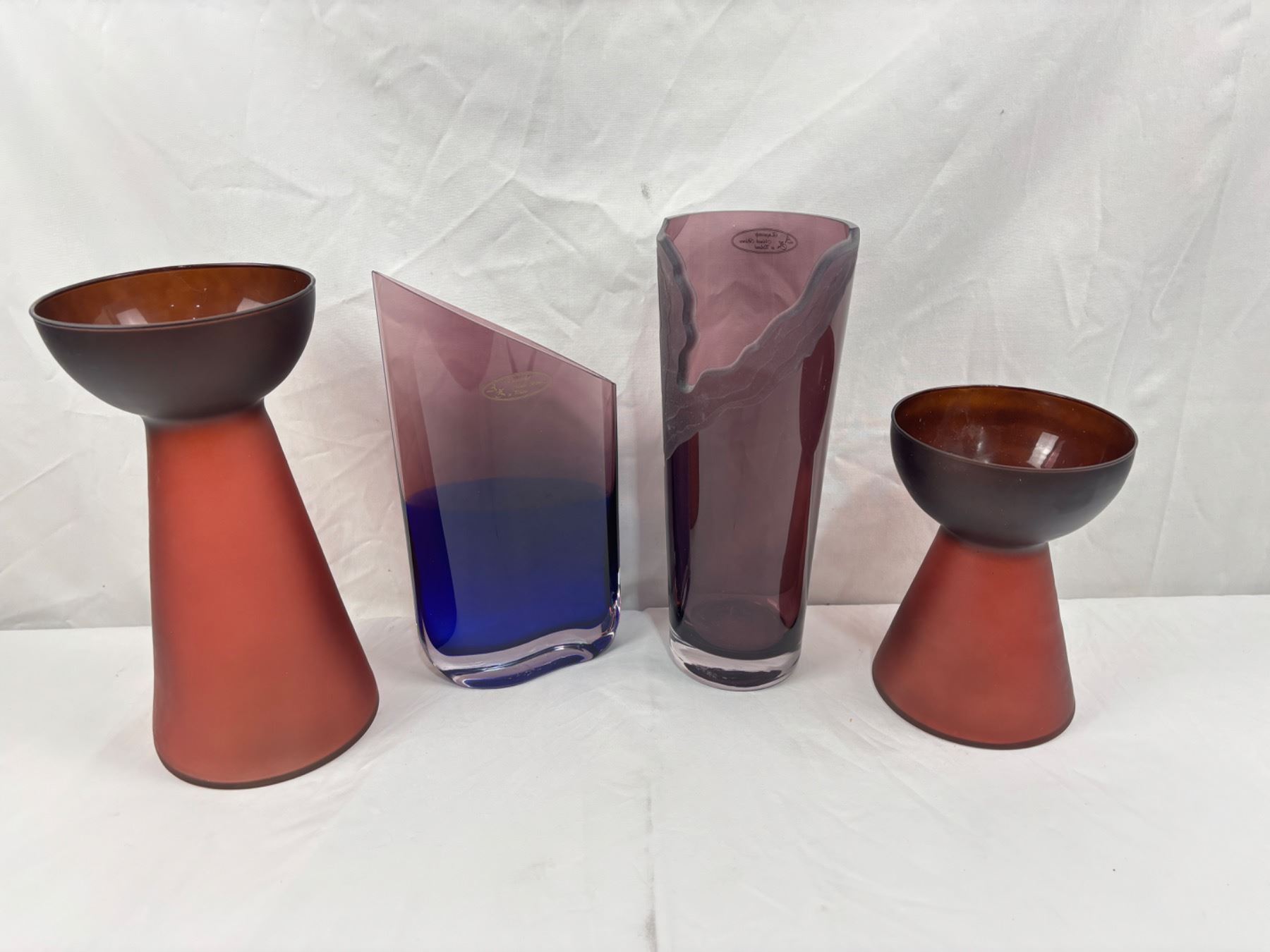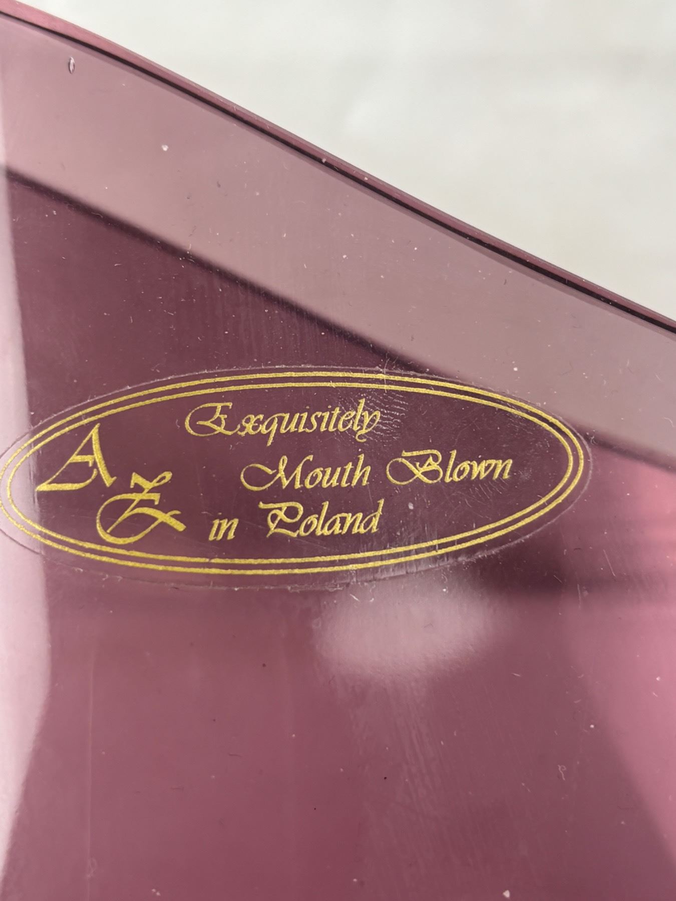 Includes two Exquisitely Mouth Blown in Poland vases, Tallest piece is 12.5"H