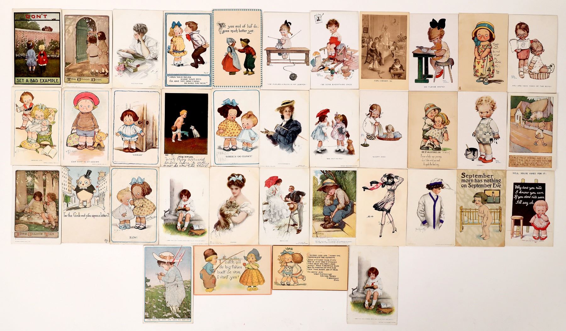 Lot of 37. One Tuck's card. A collection of artists drawing of cute little children. Post marks : So. Have Mich., San Jose Ca., Campbell Ca., Taylor Tx., Plymouth MA., Oshtemo Mi.,Vancouver B.C.,Cuba Wis., 1907-16 Ken Prag Collection
