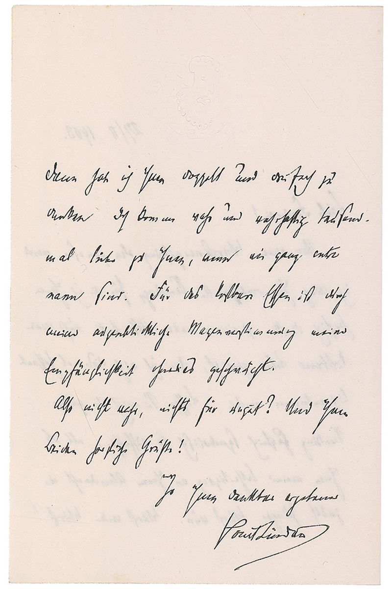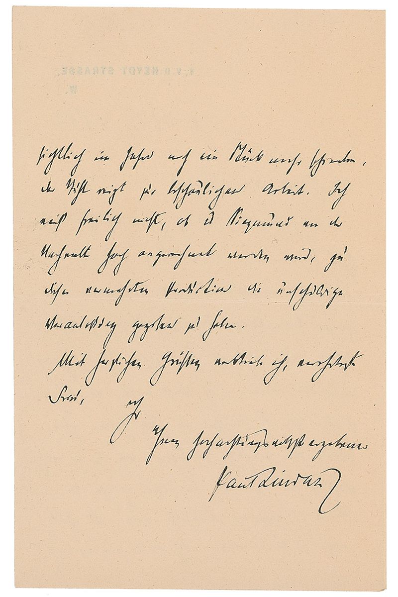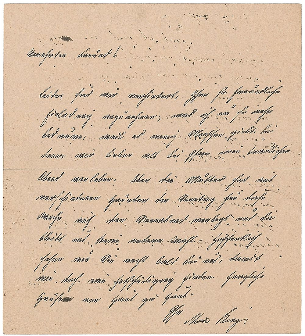 Max Ring: Neatly penned, untranslated ALS in German, one page, 4 x 4.5, no date. In fine condition, with tiny edge separation to left edge.
