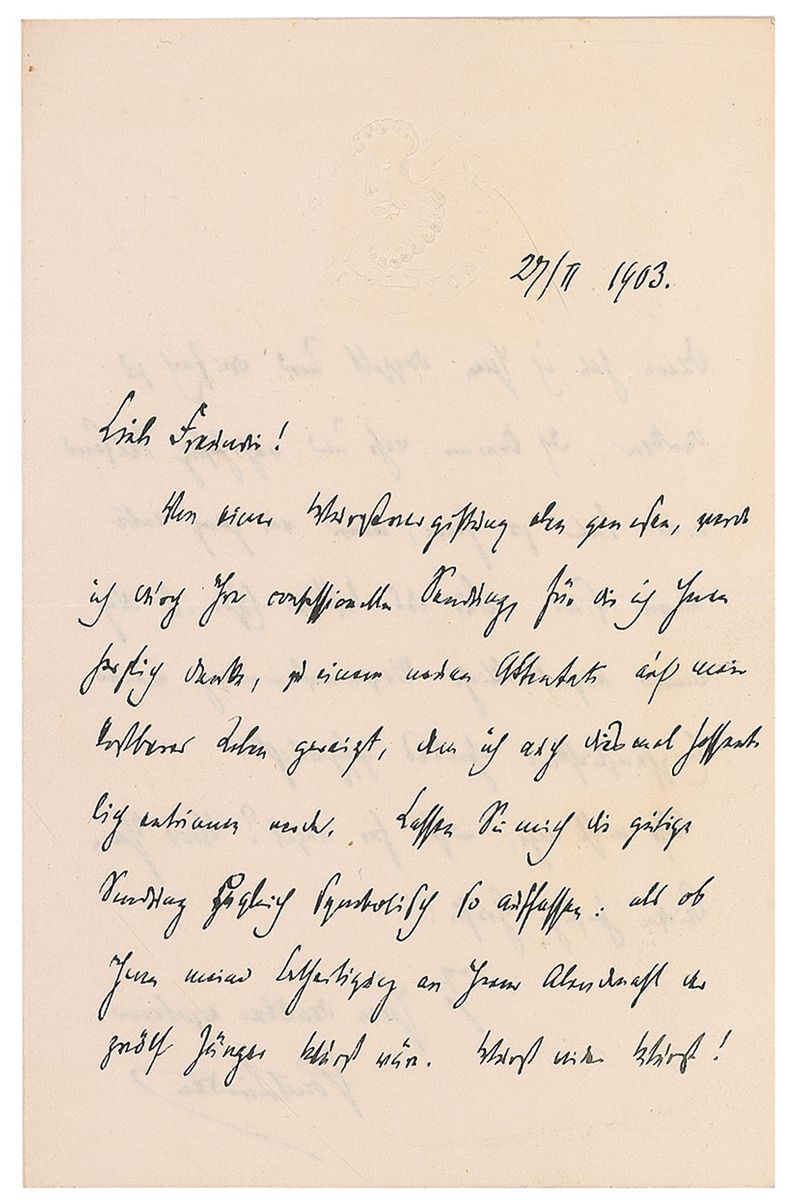 Paul Lindau: Two untranslated ALSs in German, the first, one page both sides, 4.5 x 7, personal letterhead, March 1, 1883; the second, one page both sides, 4 x 6, embossed letterhead, February 27, 1903. In overall fine condition.