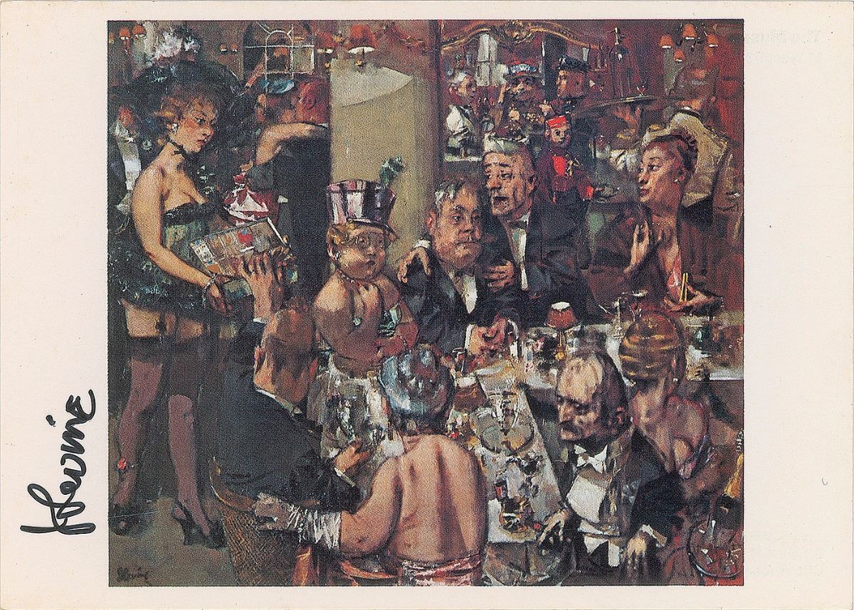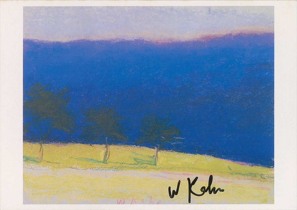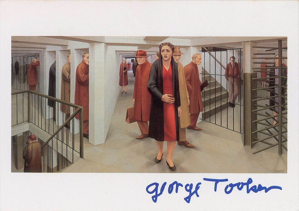 Eleven postcards featuring various artworks, approximately 4 x 6 and 6 x 4, each signed by the artist in various ink types and artist’s pencil, including: Jack Levine, Alex Katz, Jacob Lawrence, George Tooker, Will Barnet, Christo and Jeanne-Claude, Wayne Thiebaud, Chuck Close, Wolf Kahn, Marisol, and one other. In overall fine condition.