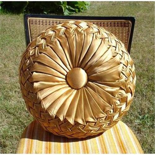 BEAUTIFUL ANTIQUE DECORATIVE PILLOW,MADE IN ARTS AND CRAFTS STYLE FROM GOLD COLOR SATIN, as per images - Excellent condition, Measuring about 16" in diam., US Buyer to pay 9.00 for shipping plus insurance,THANKS.