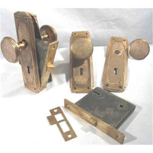 Many more pictures are available. Two Fabulous Arts & Crafts/ Art Nouveau Door handles, plates and Locks. Made by "PENN". Total weight is 8lbs. (10lbs with packing.) There are two face plates although only one is shown in the first picture. All original. They will need a hefty door!! Questions welcomed.