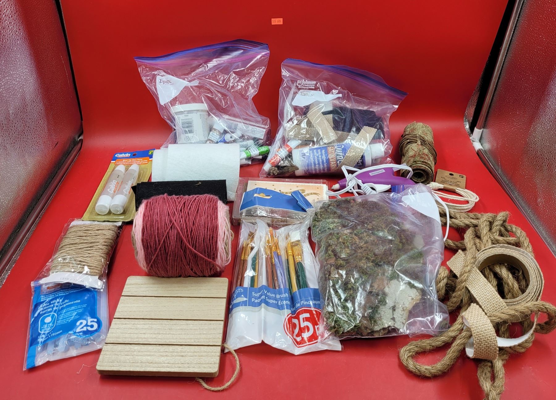 Arts & Crafts Lot w/ Paintbrushes, Artificial Moss, Acrylic Paints, & More