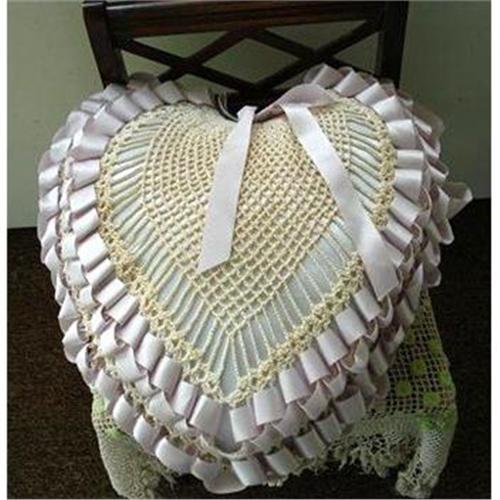 VERY PRETTY VINTAGE HEART SHAPE PILLOW, MADE FROM LAVANDER COLOR RIBBONS AND CROCHETED LACE, Excellent condition, measuring about 15 1/2" x 15", US Buyer to pay 8.00 for shipping plus insurance.THANKS.