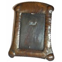 Arts & Crafts frame, hammered copper with spiral designs at corners, original patina, 8.5"h