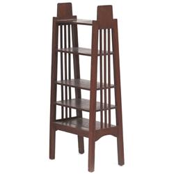 Arts & Crafts magazine stand, four shelves with three vertical spindles on each side, recoated original finish, 19”w x 13”d x 46”h, very good condition