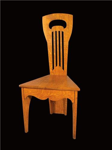 Arts and Crafts Chair, unusual design. Excellent refinished condition. 20 X 42 inches.