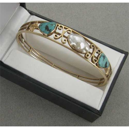 <tr><td>Title:"Arts and Crafts" Turquoise and Pearl Gold</td></tr>