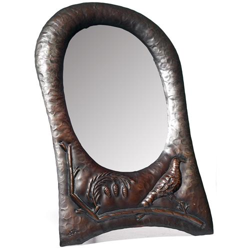 Arts and Crafts frame, hammered copper with design of a bird on a branch, original patina, unknown mark,7.5in.h