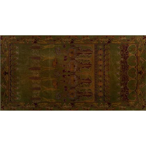 Arts and Crafts tapestry, intricate floral design in brown and gold on a green field,60in.w x 114in.l,very good condition