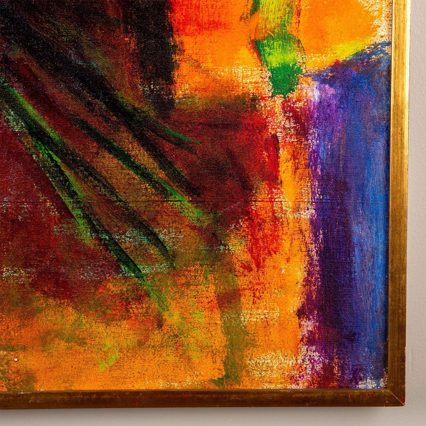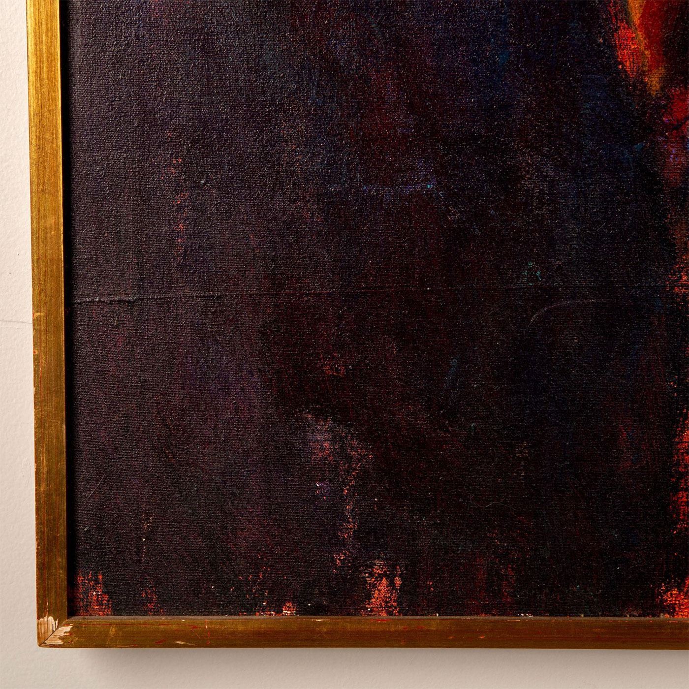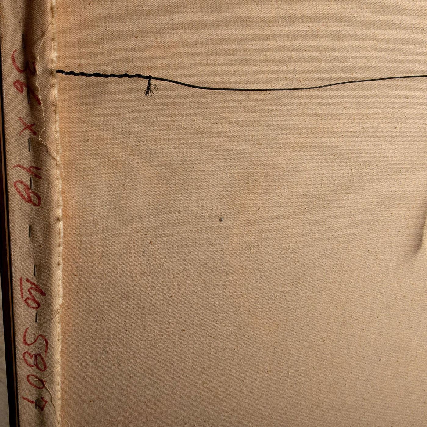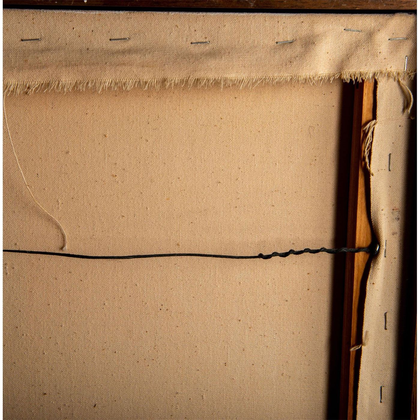 Portrait of a woman holding pink lilies next to a window. Signed and dated top right. Wooden frame with gold accent. Some damages to the frame. Sight size - 47.75"H x 35.5"W. Frame size - 49"H x 37"W. Signature/Marking Location: Top right Material/Technique: Painted Medium: Oil on Canvas
