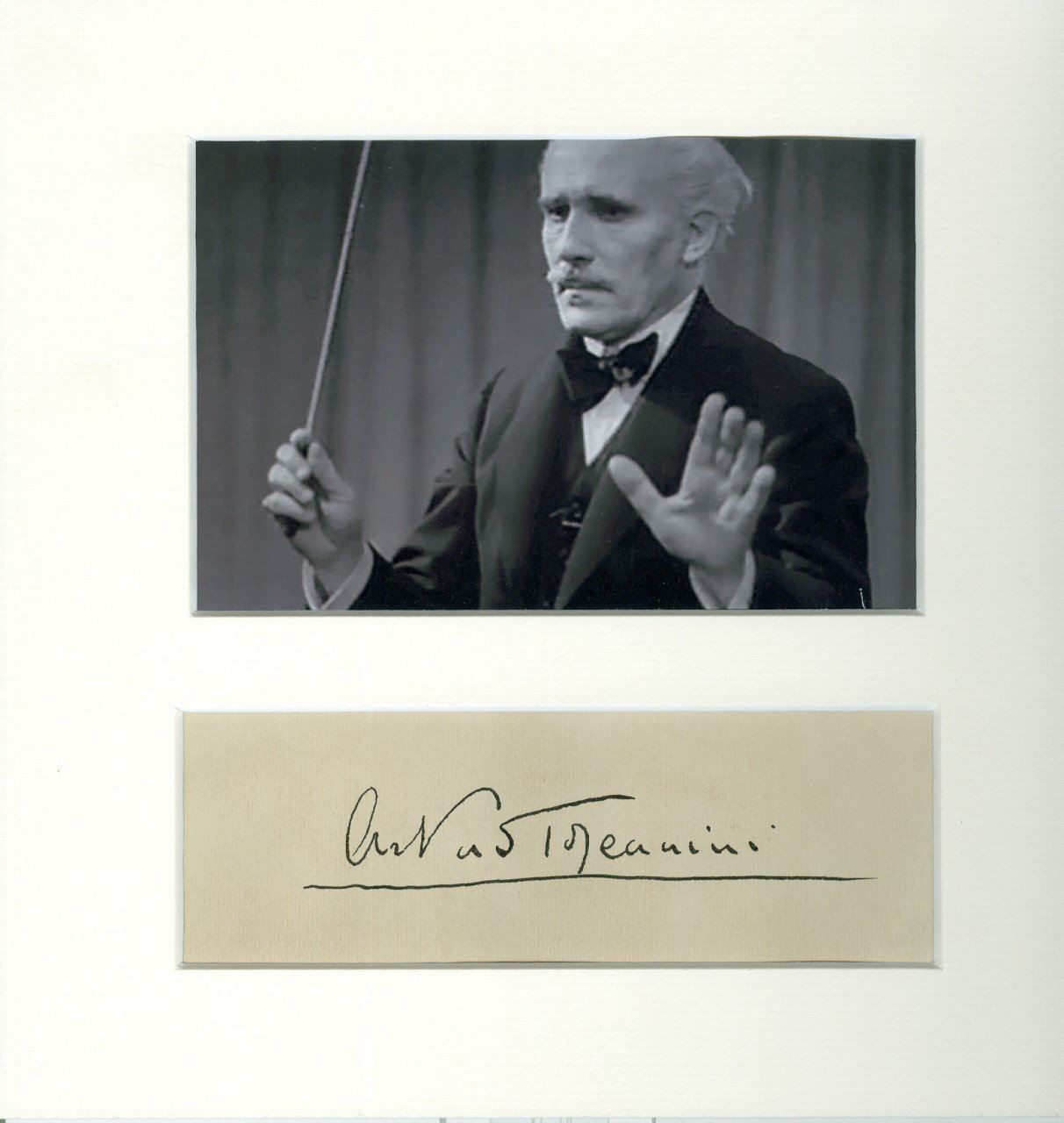 Known as one of the most acclaimed musicians of the late 19th and of the 20th century, renowned for his intensity, his perfectionism, his ear for orchestral detail and sonority, and his eidetic memory. An autograph cutting, mounted and framed, and supplied with coa.