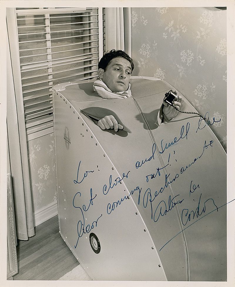 Vintage glossy 8 x 10 photo of the actor in a sweat box, signed and inscribed in fountain pen to Lon McCallister, “Lon, Get closer and smell the licor [sic] coming out! Arturo de Cordova.” A few scattered light creases and a bit of irregular ink adhesion to last name of signature, otherwise fine condition.