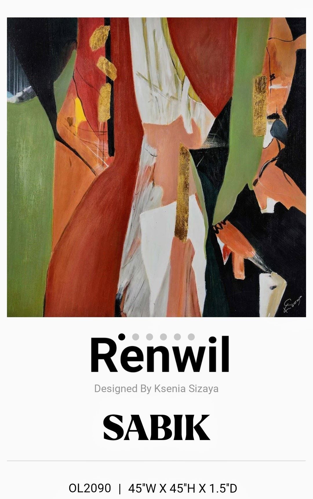 Abstract canvas painting, 45"W x 45"H, bold and earthy tones with metallic accents, new.