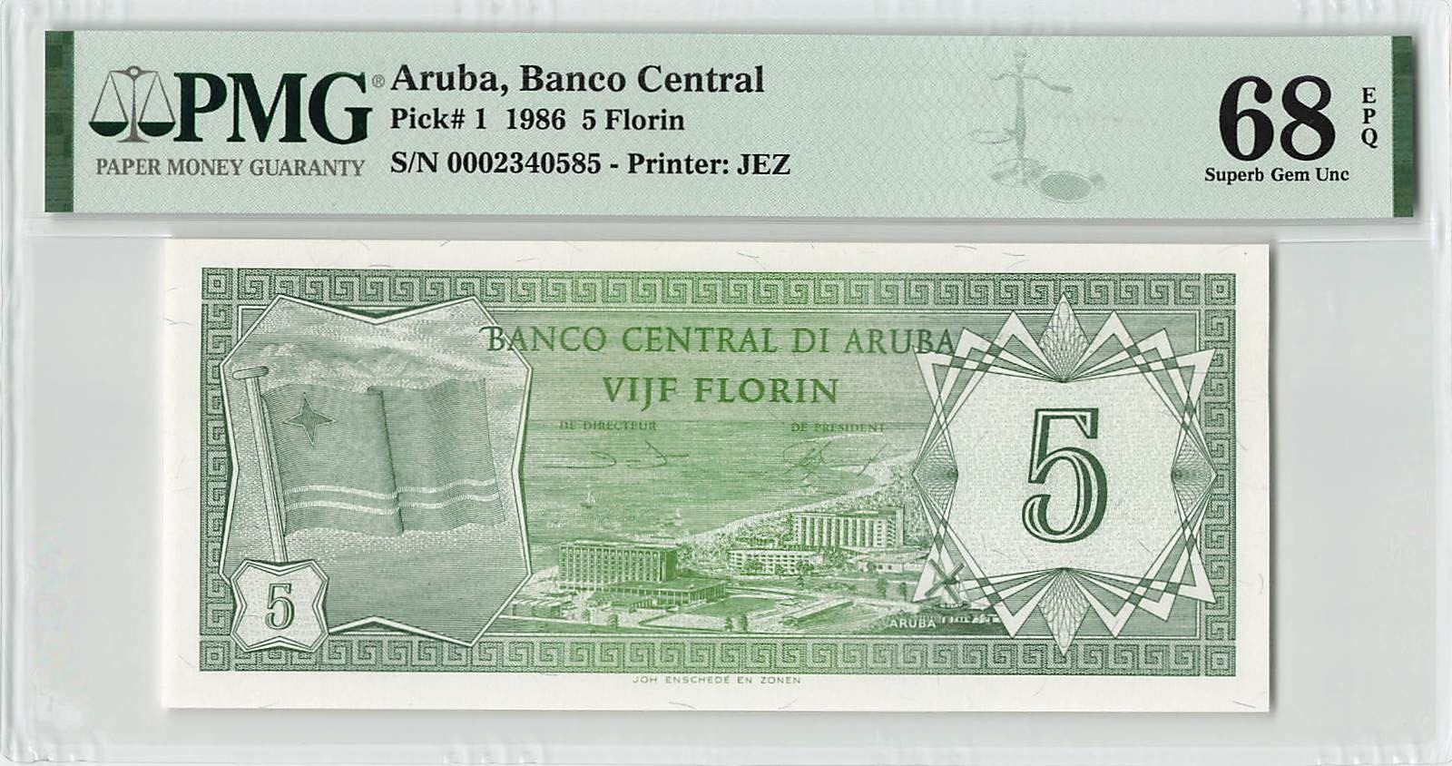 Aruba 5 Florin 1986 Pick 1 PMG Superb Gem UNC 68 EPQ