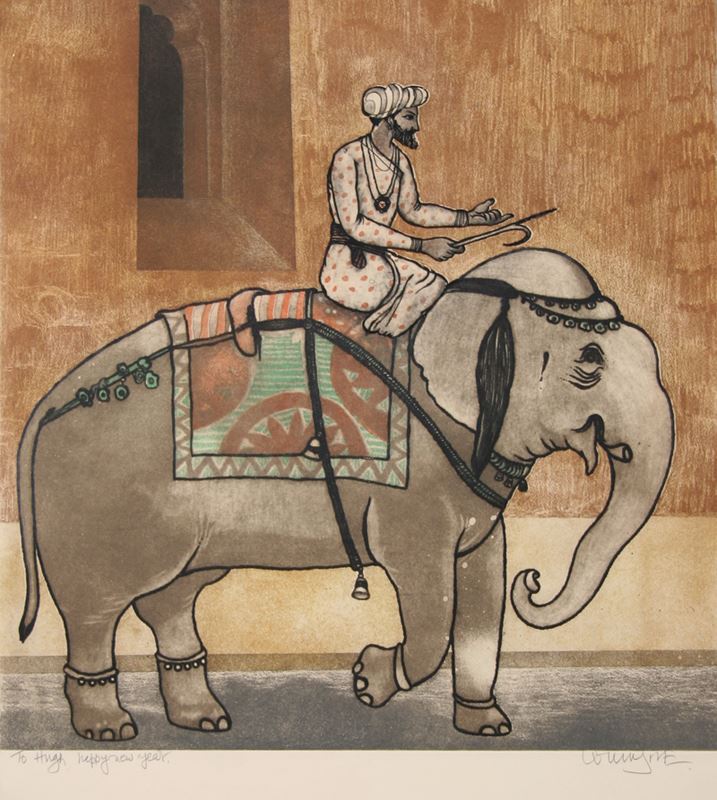 Arun Bose, Elephant Ride, Aquatint Etching