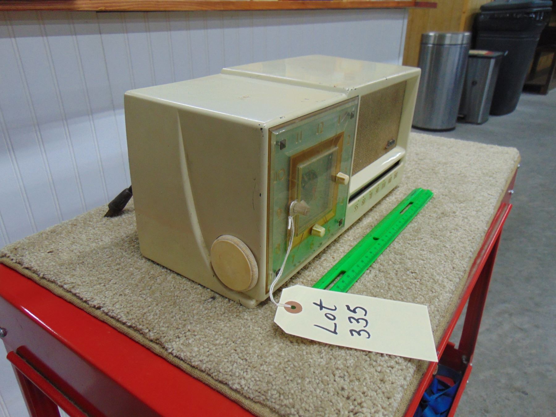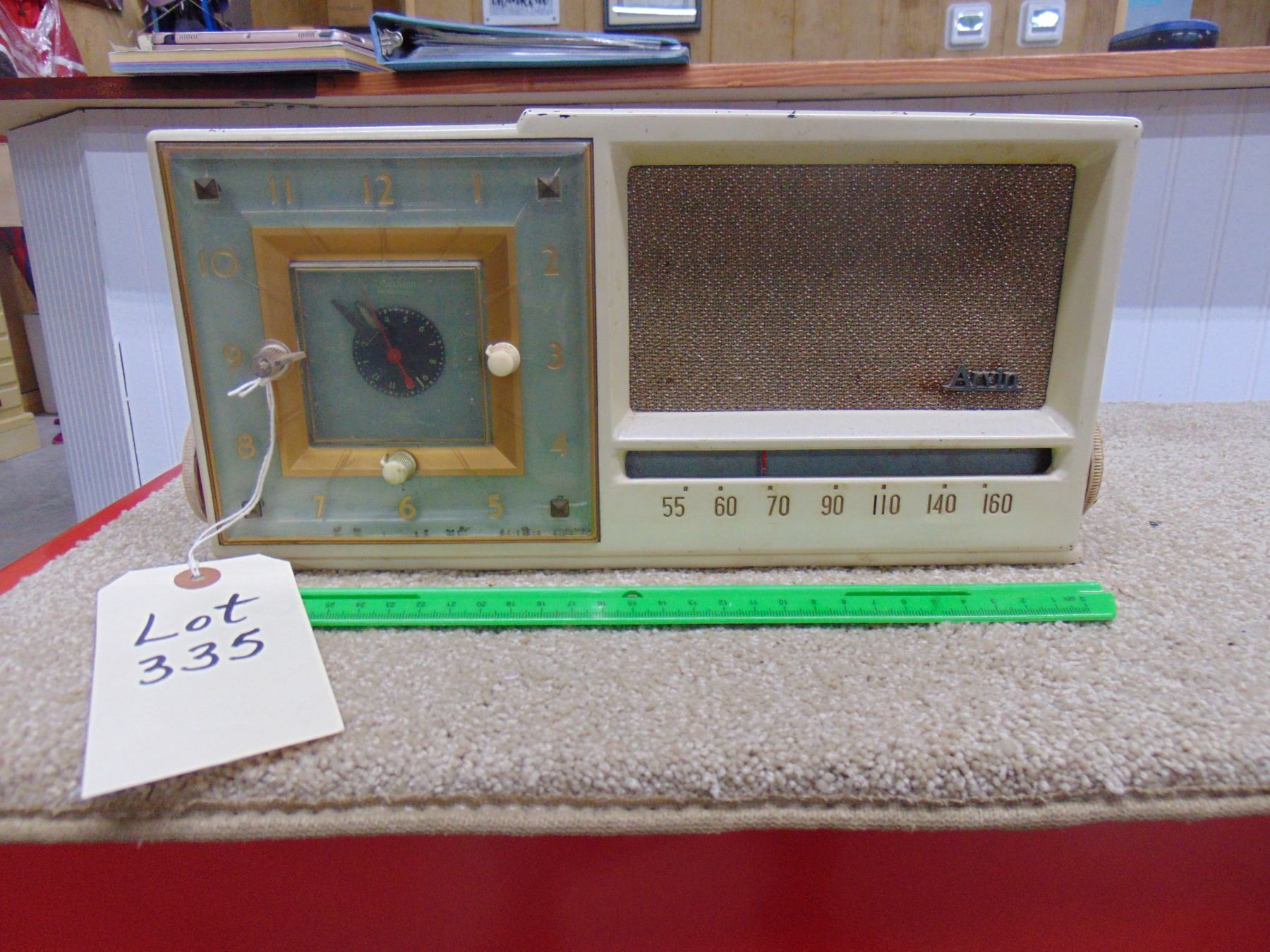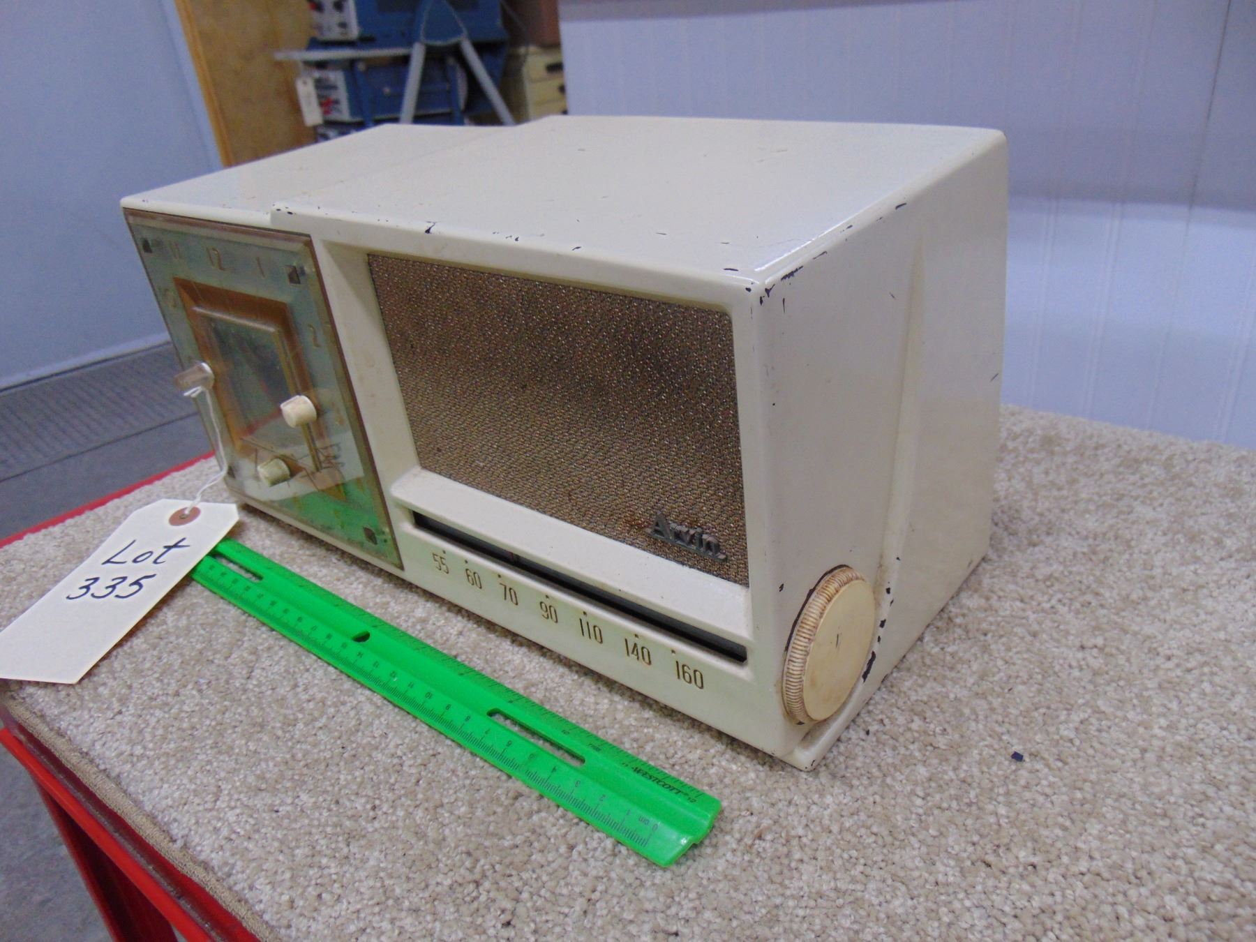 Arvin white bakelite clock radio; model 657T; with original back; clock works