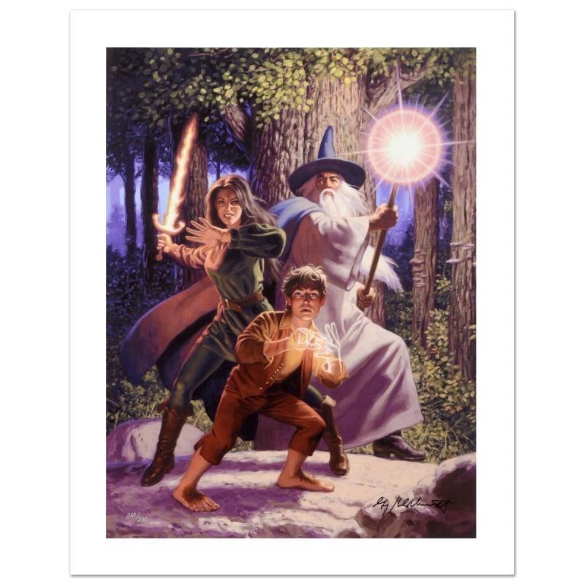 Arwen Joins The Quest by The Brothers Hildebrandt. Known world wide for their fantasy and science fiction illustrations, identical twin brothers Greg and Tim Hildebrandt created an abundance of fascinating artwork, most notably their illustration work for J.R.R. Tolkien's 'The Hobbit' and 'Lord of the Rings'. "Arwen Joins The Quest", originally created in the 1970's for Ballantine Books, is a limited edition giclee on canvas, numbered and hand signed by Greg Hildebrandt! Includes Certificate of Authenticity! Measures approx. 21" x 28" (image).