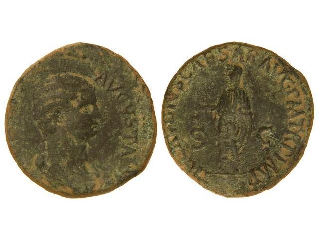 As. 36 a.c.-38 d.C. ANTONIA. Anv.: (ANTONIA) AVGVSTA. Busto de Antonia a derecha. Rev.: Claudio estante portando vaso de libaciones. 11,40 grs. Pátina verde. C-6. MBC-/MBC.