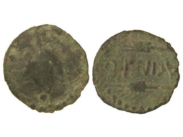As. ACINIPO. Anv.: Racimo de uvas. Rev.: Dos espigas a derecha entre ambas ACINIPO. 3,30 grs. Pátina verde. AB-46 sim. MBC.