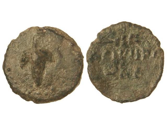 As. ACINIPO. Anv.: Racimo de uvas. Rev.: Dos espigas a derecha, entre ambas ACINIPO. 8,20 grs. Pátina verde. AB-46. EBC-/MBC.