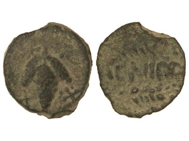 As. - ACINIPO. - Anv.: Racimo de uvas, en la parte superior estrella, (estrella) y creciente, debajo dos cruces. Rev.: Dos espigas a derecha entre ambas ACINIPO. 7,90 grs. Pátina verde. AB-No cat.; Vill-9. (MBC+). - -
