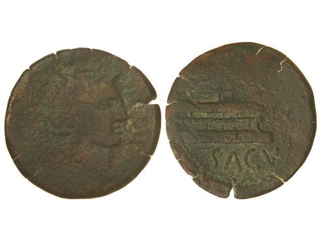 As. - ARSE-SAGUNTO. - Anv.: Cabeza galeada de Roma a derecha, delante (CN. BAEBI. GLAB.), detrás (L. CALPVRN. AED. C.). Rev.: Proa de nave a derecha, encima Victoria, delante caduceo. En exergo: SAGV. 12,70 grs. AB-2081; Vill-64. BC-/BC+. - -