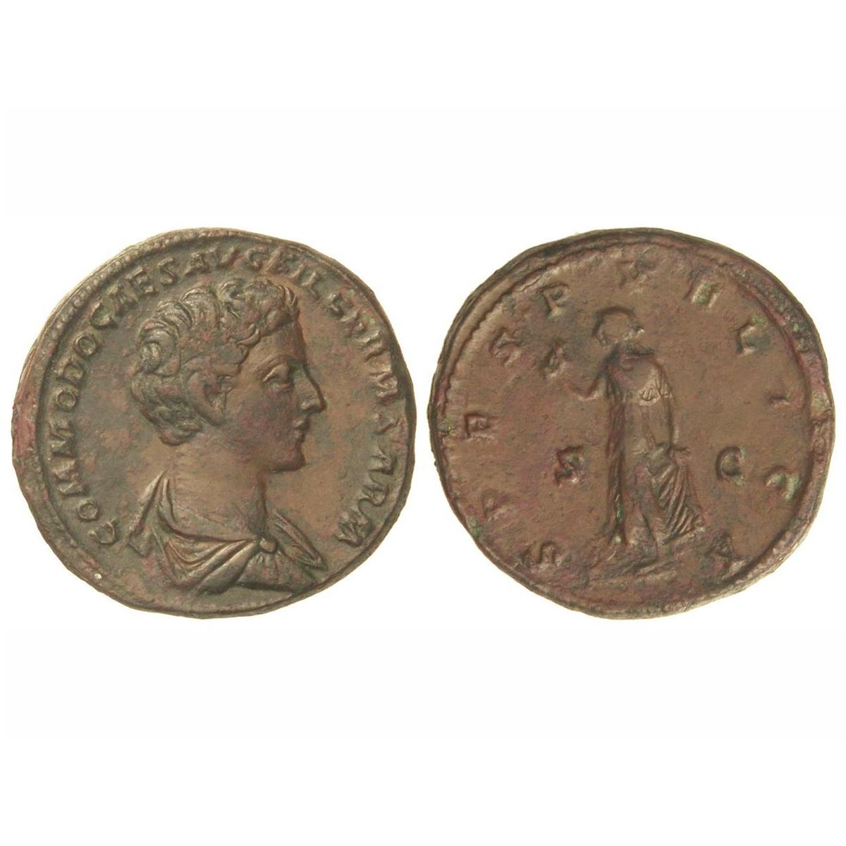 As. - Acuñada el 175-176 d.C. - CÓMODO. - Anv.: COMMODO CAES. AVG. FIL. GERM. SARM. Busto descubierto a derecha. Rev.: SPES PVBLICA S. C. Esperanza en marcha a izquierda. 14,63 grs. Pátina marrón. C-710. MBC+/MBC. - -