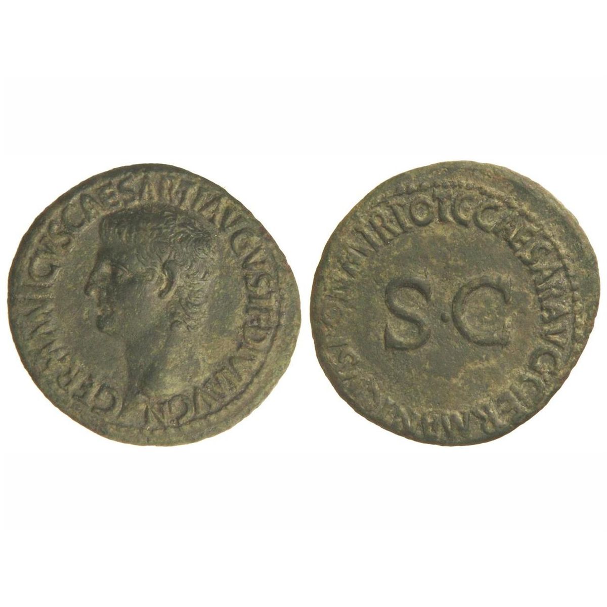As. - Acuñada el 37-38 d.C. - GERMÁNICO. Acuñación de Calígula. - Anv.: GERMANICVS CAESAR TI. AVGVST. F. DIVI AVG. N. Cabeza descubierta a izquierda. Rev.: C. CAESAR AVG. GERMANICVS PON. M. TR. POT. alrededor de S. C. 10,69 grs. Pátina verde. MAGNÍFICO EJEMPLAR. C-1. EBC. - -