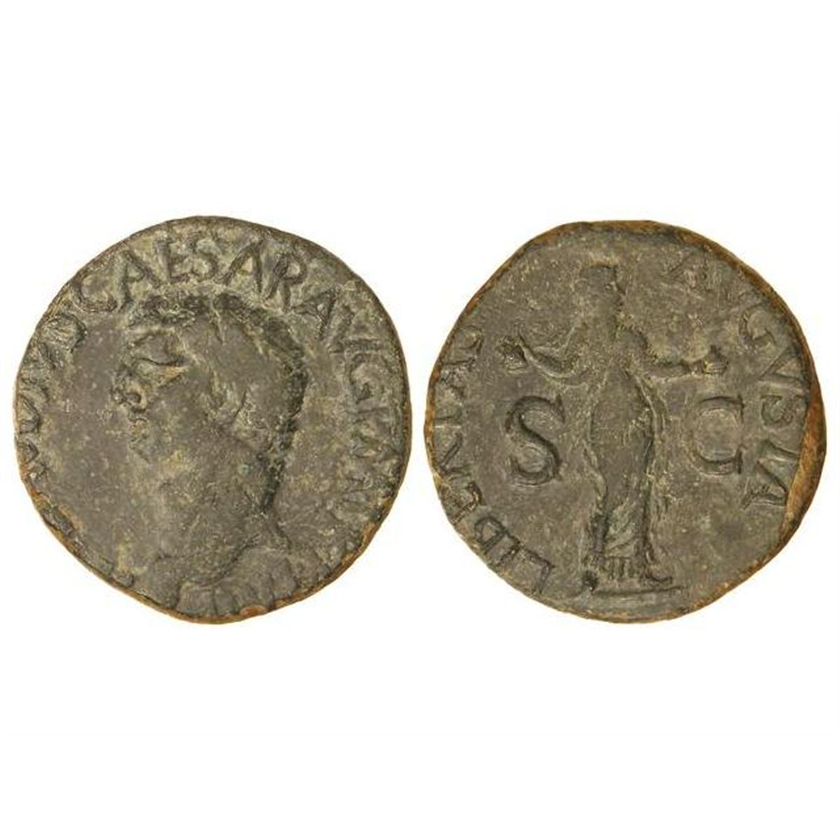 As. - Acuñada el 41 d.C. - CLAUDIO. - Anv.: (TI. CLAV)DIVS CAESAR AVG. P. M. TR. P. IMP. Cabeza descubierta a izquierda. Rev.: LIBERTAS AVGVSTA S. C. Libertad en pie a derecha. 9,70 grs. Pátina verde. C-47. MBC-. - -