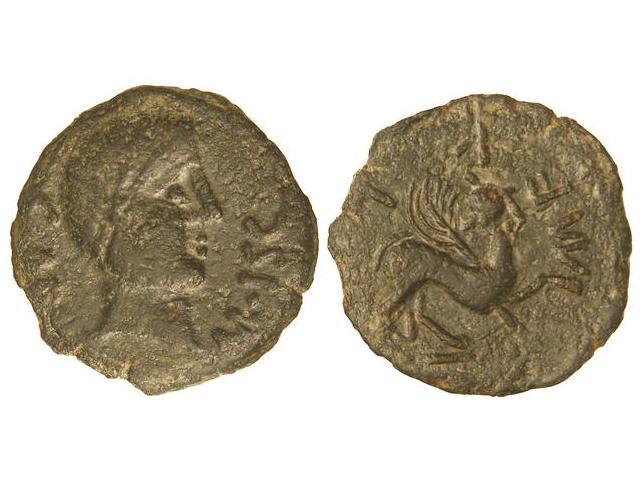 As. - CASTULO. - Anv.: C. AEL. M. ISC. Cabeza masculina laureada a derecha. Rev.: M. FVL. Esfinge a derecha. 10,50 grs. Pátina oscura. AB-710. MBC+. - -