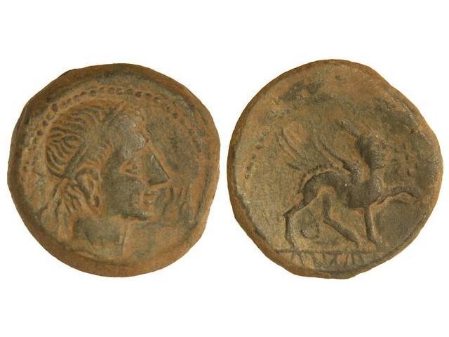 As. CASTULO. Anv.: Cabeza diademada a derecha, delante mano. Rev.: Esfinge a derecha, bajo línea CaSTeLE. 17,90 grs. CU. Pátina verde terrosa. AB-700. EBC-/MBC+.