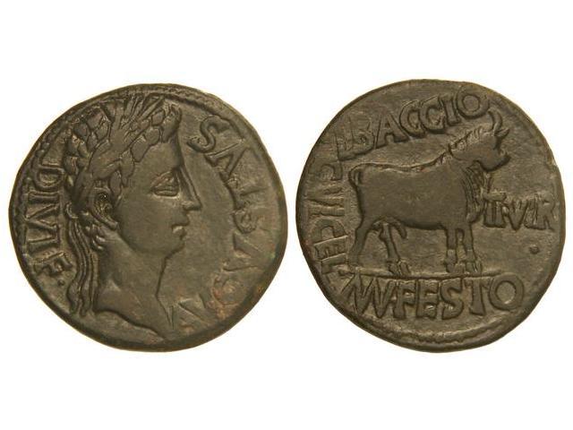 As. CELSA. Anv.: Cabeza laureada de Augusto a derecha, alrededor AVGVSTVS DIVI. FR. Rev.: Toro a derecha. 13,80 grs. CU. Pátina verde. AB-809. MBC+.