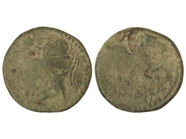 As. - EMPORIA. - Anv.: Cabeza de Palas a derecha, delante (C. I. L.) C. Q. Rev.: Pegaso a derecha, encima láurea, debajo EMPORIT. 9,30 grs. Pátina verde. AB-1251; Vill-5. BC+/BC. - -