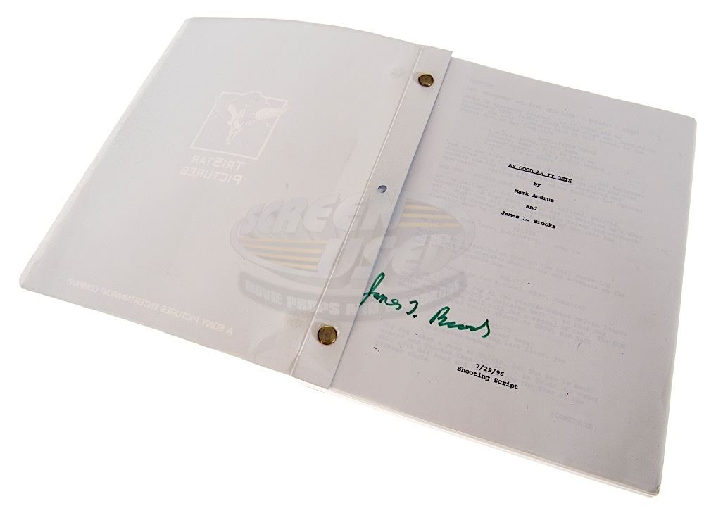 (TriStar Pictures, 1997) This 136 page script features all white pages and is dated 7/29/96. The title page has been autographed by the film's director, James L. Brooks. Minor wear from use is present.