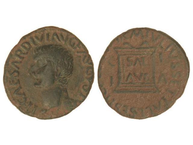 As. - ILICI. - Anv.: TI. CAESAR DIVI. AVG. F. AVGVSTVS P. M. R. Cabeza de Tiberio a izquierda. Rev.: M. IVLIVS. SETTAL. L. SESTI CE(KER) II VIR. Ara con SAL. AVG. a los lados C. I. I. A. 11 grs. Pátina verde en anverso. AB-1522. MBC. - -