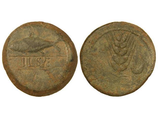 As. ILSE. Anv.: Sábalo a izquierda, entre líneas ILSE, debajo A. Rev.: Espiga, a derecha creciente.