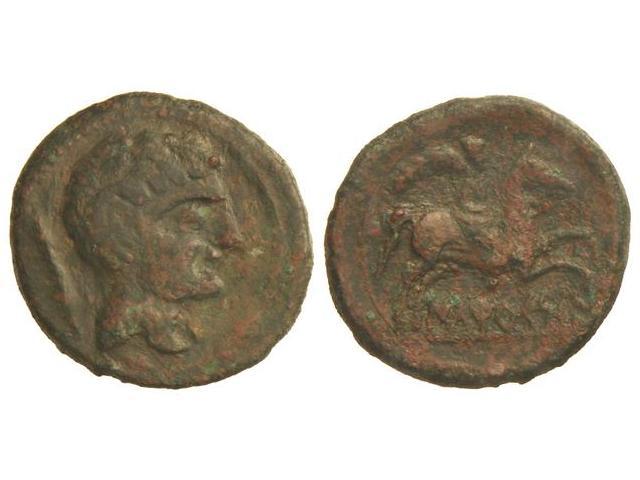 As. ILTIRCESCEN. Anv.: Cabeza masculina a derecha, detrás espiga. Rev.: Jinete a derecha, con palma, debajo leyenda ibérica. 11,50 grs. (Oxidaciones limpiadas en reverso). AB-1446. MBC-.