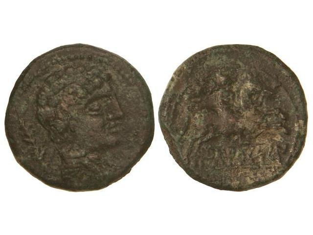 As. - ILTIRKESKEN. - Anv.: Cabeza masculina a derecha, detrás palma. Rev.: Jinete con palma a derecha, debajo leyenda ibérica. 12,10 grs. Pátina verde y marrón. (Leves oxidaciones). AB-1448 var.; Vil--16. (MBC+). - -