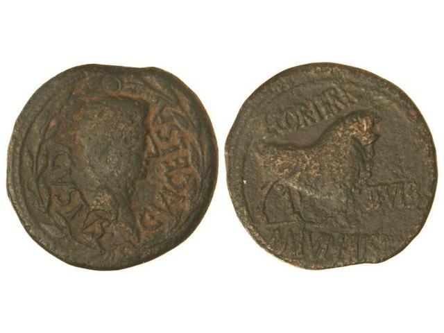 As. - ÉPOCA DE AUGUSTO. - CELSA. - Anv.: AVGVSTVS C. V. I. CELSA. Cabeza de Augusto a derecha dentro de láurea. Rev.: L. COR. TER. M. IVN. HISP. II VIR. Toro a derecha. 15 grs. Pátina oscura. (Oxidaciones). AB-807. BC+. - -