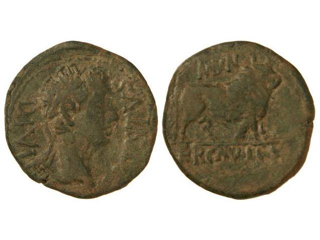 As. - ÉPOCA DE AUGUSTO. - ERCAVICA. - Anv.: AVGVSTVS DIVI. F. Cabeza laureada de Augusto a derecha. Rev.: MVN. ERCAVICA. Todo a derecha (rabo recto). 12,20 grs. Pátina verde. AB-1278. MBC-. - -