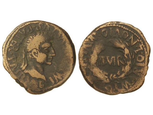 As. ÉPOCA DE AUGUSTO. TURIASO. Anv.: IMP. (AVG)VSTVS PATER PATRIAE. Cabeza laureada de Augusto a derecha. Rev.: II VIR. L. MARIO. L. NOVIO. MV(N.) (TVRIASO). Láurea. 12,50 grs. AB-2439. MBC-.
