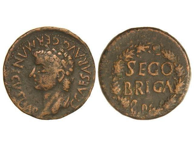As. ÉPOCA DE CALÍGULA. SEGOBRIGA. Anv.: C. CAESAR AVG. GERMANICVS IMP. Cabeza laureada de Calígula a izquierda. Rev.: SEGOBRIGA dentro de láurea. 13,90 grs. AB-2191. (MBC+).