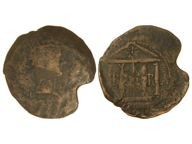 As. - ÉPOCA DE TIBERIO. - ABDERA. - Anv.: (TI. CAESAR DIVI AVG. F. AVGVSTVS). Cabeza laureada de Tiberio a derecha. Rev.: Templo tetrástilo entre las columnas ABDERA, en el tímpano, estrella. 11,60 grs. (Cospel algo faltado). AB-23. BC-/BC+. - -