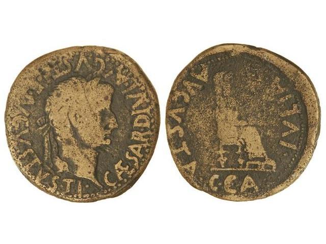 As. - ÉPOCA DE TIBERIO. - CAESARAUGUSTA. - Anv.: TI. CAESAR DIVI. AVGVSTI F. AVGVSTVS. Cabeza laureada de Tiberio a derecha. Rev.: C. C. A. AVGVSTA IVLIA. Livia sentada a derecha. 12,30 grs. AB-350. BC+. - -
