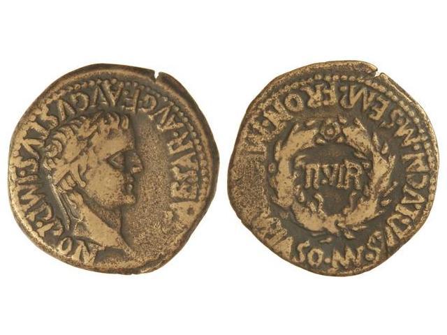 As. ÉPOCA DE TIBERIO. TURIASO. Anv.: TI. CAESAR AVG. F. AVGVSTVS IMP. PONT. Cabeza laureada de Tiberio a derecha. Rev.: MAN. SVLP. LVCAN. M. SEMP. FRONT. M(VN. T)VRIASO. Láurea, en el centro II VIR. 12,90 grs. (Pequeñas rayitas). AB-2455 var. MBC.